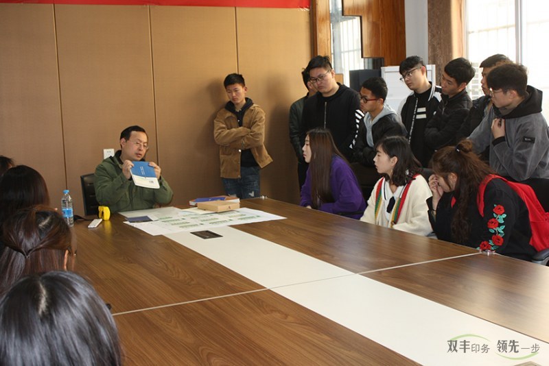 2018年3月22日上午,南陽師范學院40多名同學在美術(shù)與藝術(shù)設計學院王老師的帶領(lǐng)下,于上午到達企業(yè)參觀實踐學習,雙豐印務有限公司設計總監(jiān)杜澤先生熱情地接待了師生。