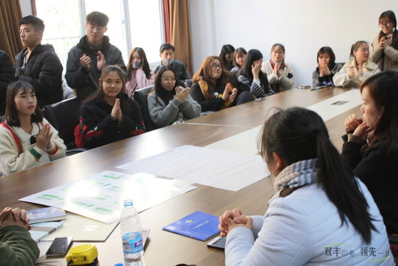 參觀完工廠,杜總監(jiān)與師生們一起在會議室開了座談會,給同學們普及了我們印刷行業(yè)的專業(yè)知識,實物講解產(chǎn)品知識與平面設計理論實踐結(jié)合實操經(jīng)驗和心得體會。同學們積極主動提問,杜老師一一詳細解答,讓師生們對印刷行業(yè)和平面設計工作有了一個新的認識,獲得師院老師和同學們的一致感謝好評,師生一致表示此行收獲很大,一定要回去多研究、多學習、多實踐!