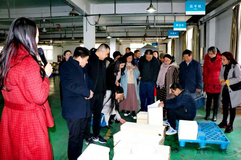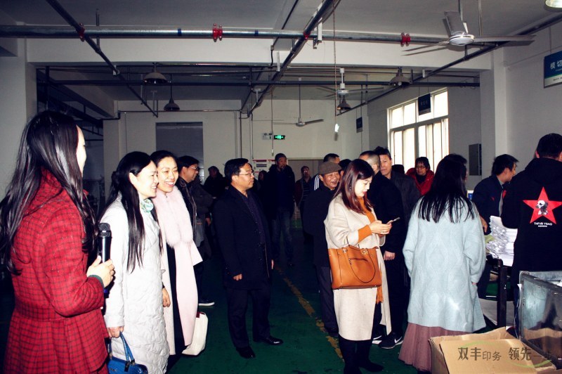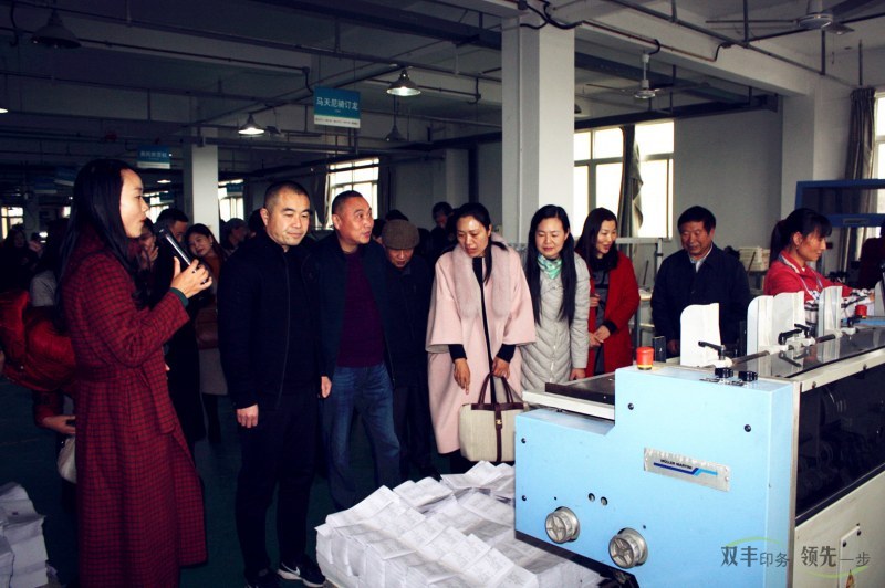 隨后大家在雙豐印務(wù)總經(jīng)理丁艷麗及副總經(jīng)理趙艷的陪同下,參觀了雙豐印務(wù)井然有序的生產(chǎn)車間廠區(qū)及現(xiàn)代化的印刷設(shè)備,真切體驗(yàn)雙豐獨(dú)具魅力的企業(yè)文化,趙總?cè)虨榇蠹抑v解印刷設(shè)備、工藝、流程等。