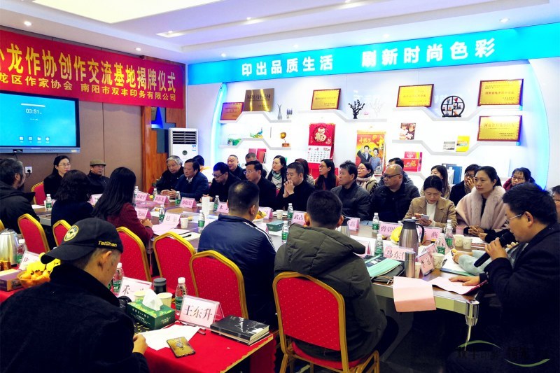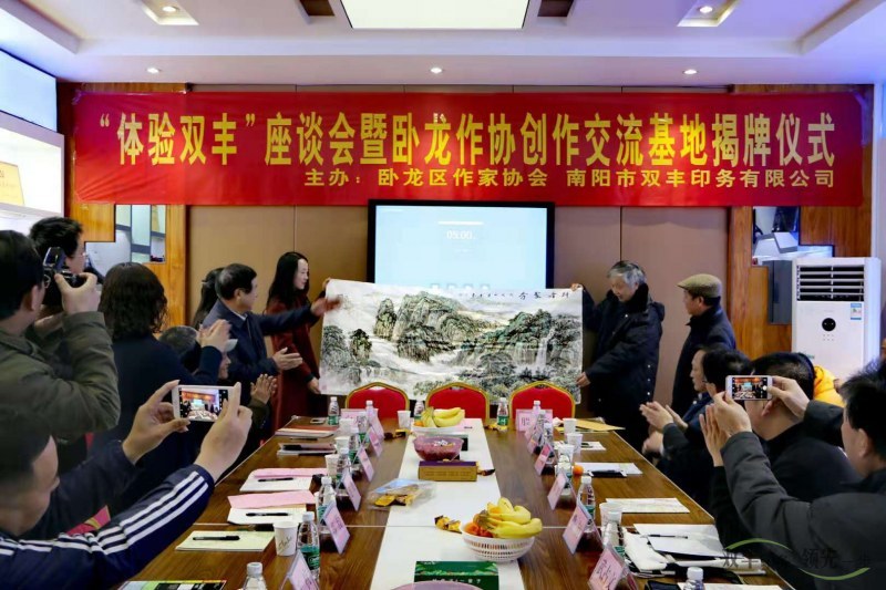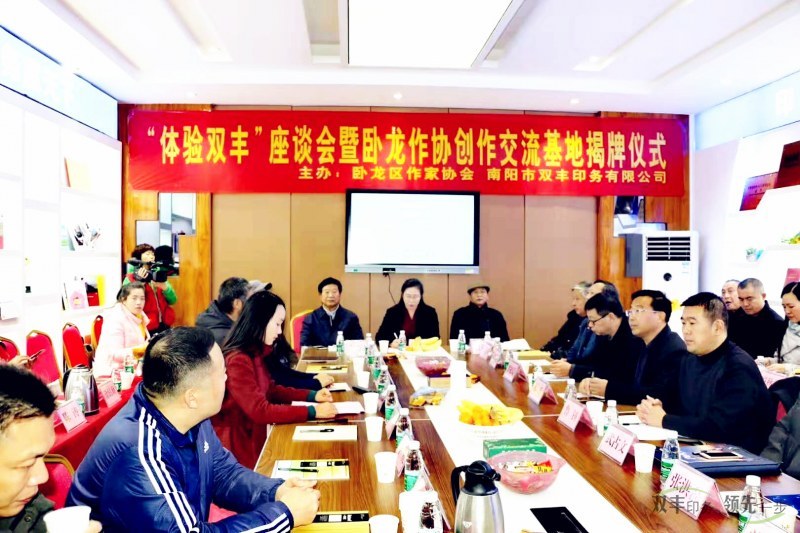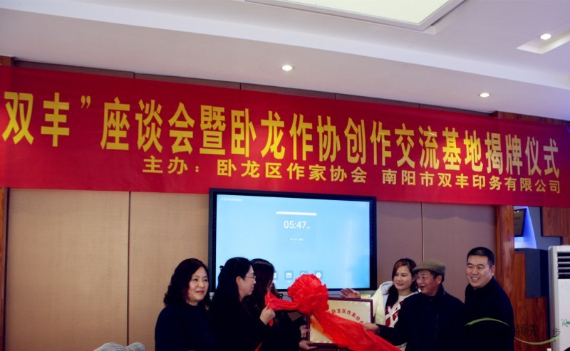 11月17日,為促進(jìn)臥龍文化繁榮,助推、助力并托舉臥龍文學(xué)事業(yè)的發(fā)展,“體驗(yàn)雙豐”座談會(huì)暨臥龍作協(xié)創(chuàng)作交流基地揭牌儀式,在南陽(yáng)市雙豐印務(wù)有限公司舉行。