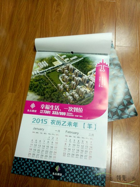 掛歷常用尺寸:685×373mm;570×430mm;480mm×770mm;570mm×840mm;380mm×1000mm;700mm×1000mm(具體尺寸可根據(jù)客戶需要定制)