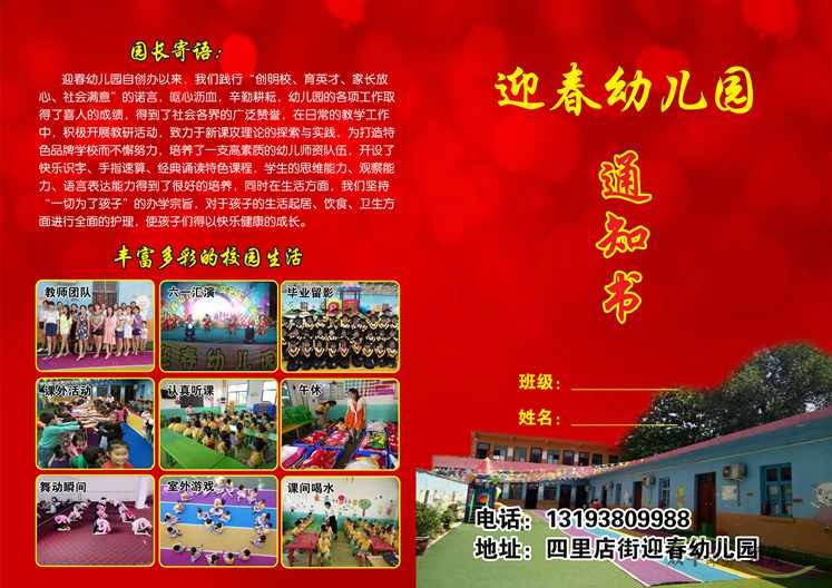 傳統(tǒng)的暑假通知書都是直接單色的,全文字形式,內(nèi)容很枯燥,現(xiàn)在很多學(xué)校都會(huì)自己做暑假通知書,然后找印刷廠家印刷,印刷的的暑假通知書有什么優(yōu)點(diǎn)呢,第一,可以圖文并茂,讓通知書不在枯燥。第二,可以介紹學(xué)校情況,讓更多的人了解學(xué)校,等于也是一個(gè)廣告宣傳途徑。近期迎春幼兒園在河南印刷廠雙豐印務(wù)定制了暑假通知書,上邊有學(xué)校的基本情況介紹,照片,還有暑假注意事項(xiàng),既美觀,又實(shí)用。